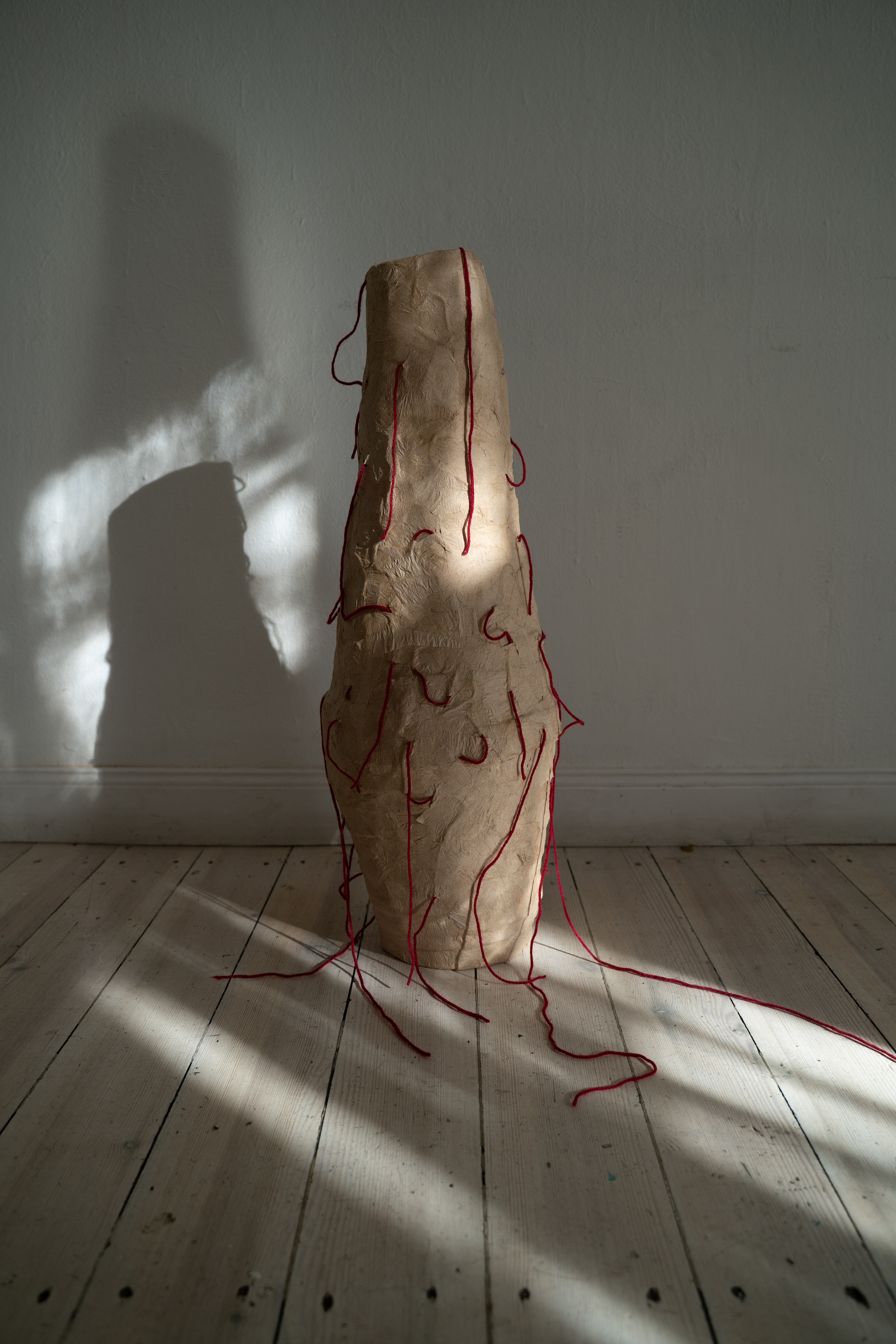 Papier-mâché, wool yarn